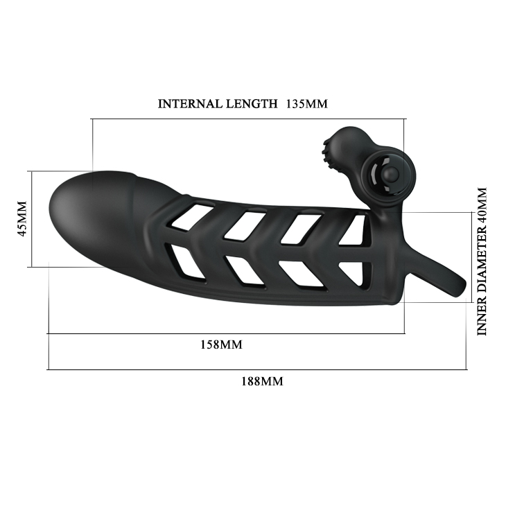 4 cm çapındadır uzunluk geçirilme sapı ile beraber 18,8 cm dir. Penisin girdiği yer ise 15,8 cm dir. Yıkanır. Su geçirmezdir banyoda duşta kullanılabilir. 10 farklı titreşim modu ayarı vardır. Titreşimli penis kılıfı kayganlaştırıcı yağ hediyelidir.